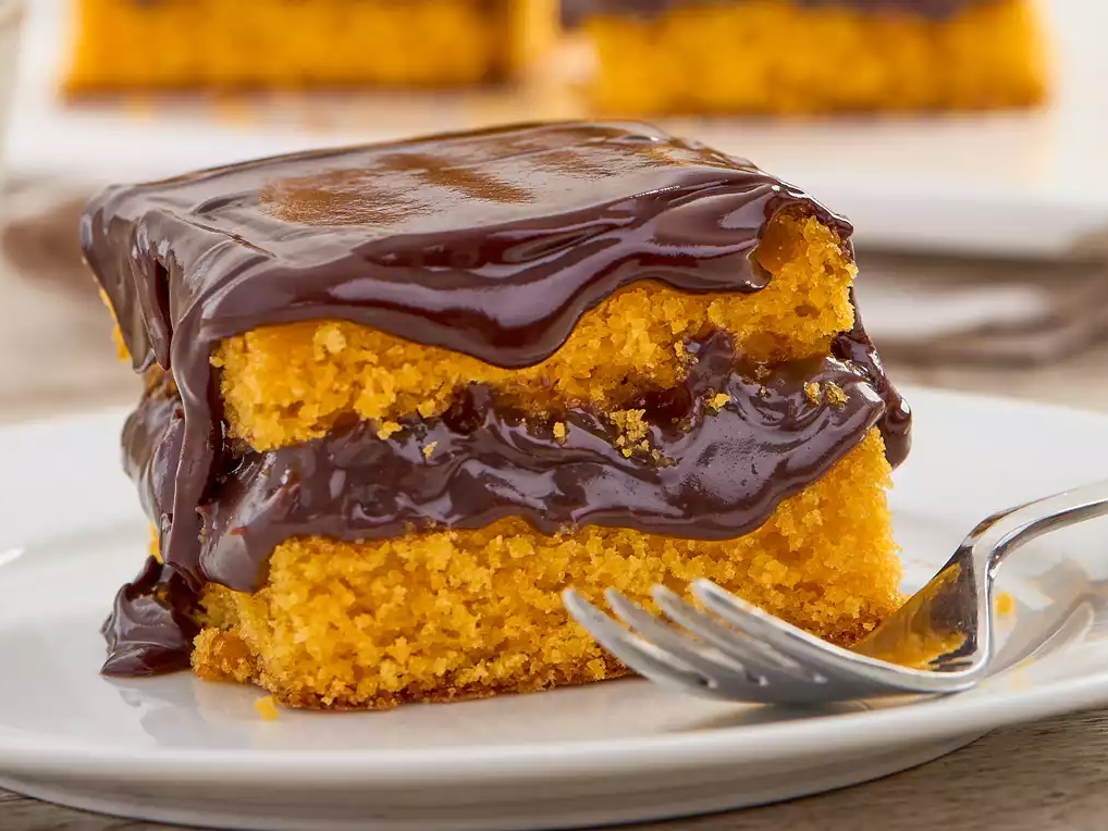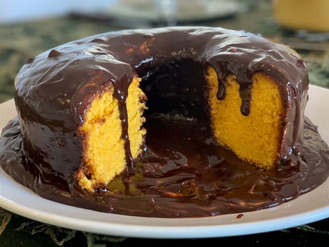 Assim que o bolo sair do forno, ainda quente, faça alguns furinhos na superfície com um garfo ou palito. Despeje a cobertura de chocolate por cima, deixando que ela penetre na massa e escorra pelas laterais. Isso faz com que cada pedaço fique úmido e ainda mais saboroso.